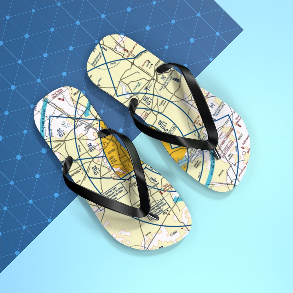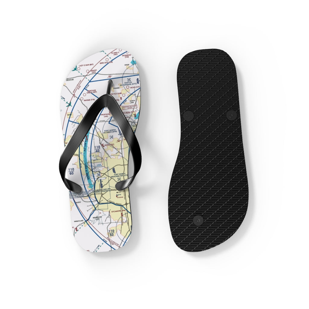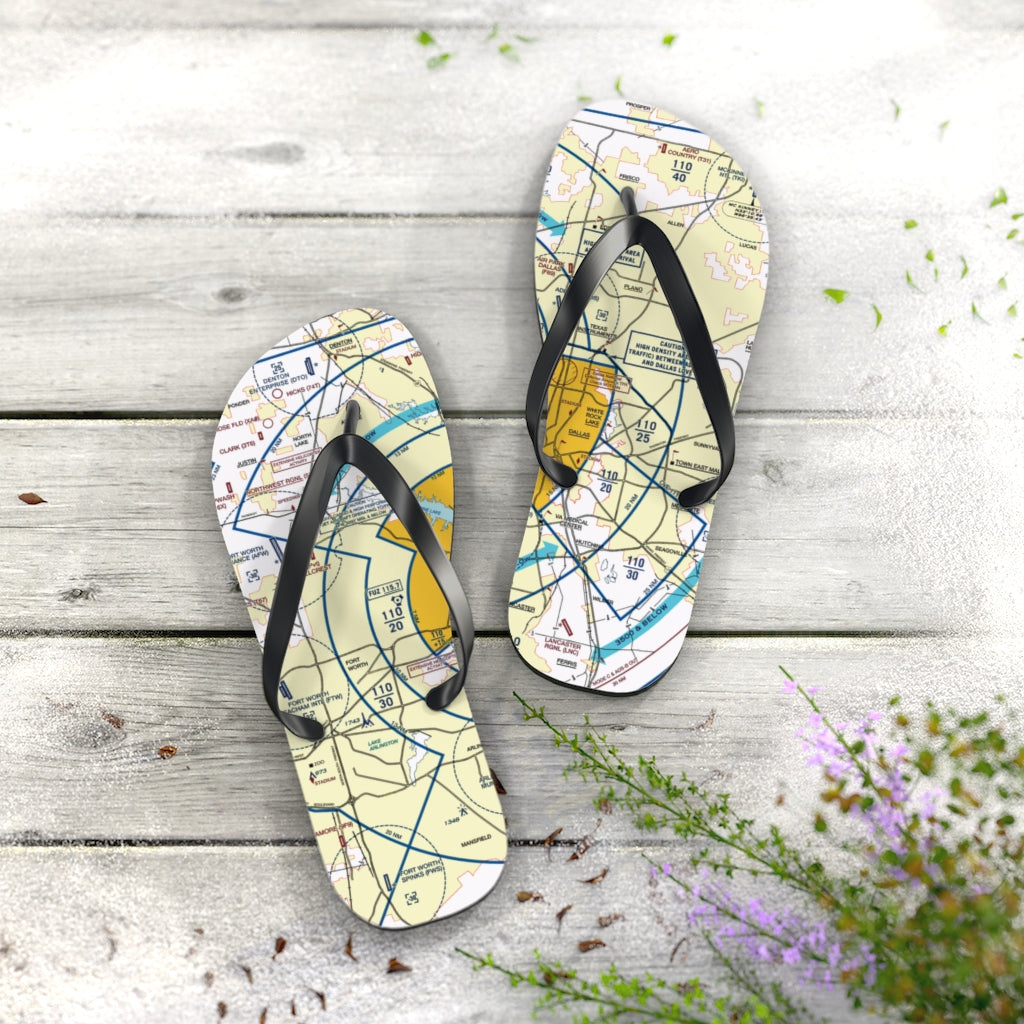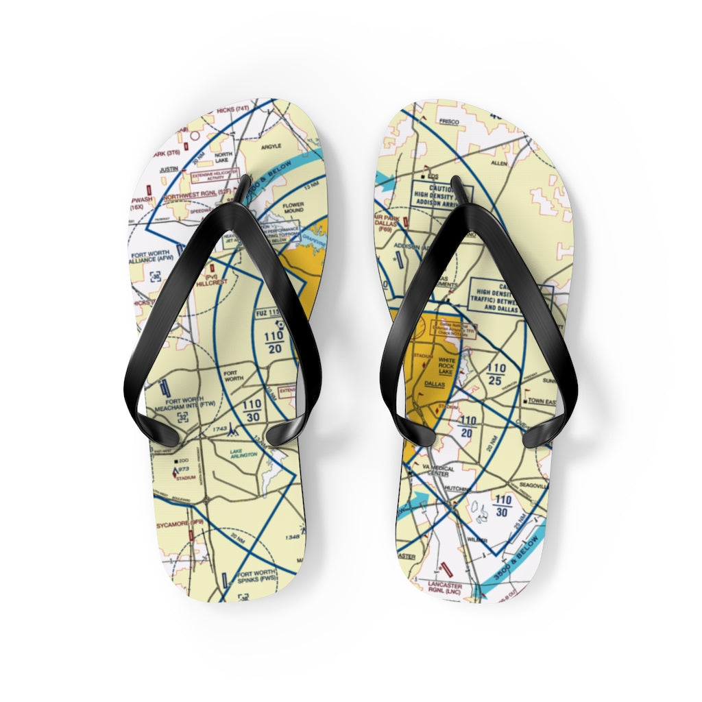 Prepare for an adventurous and carefree summer with a pair of colorful slippers featuring the Dallas - Ft. Worth International Airport (DFW) Flyway Chart. The sole is lined with a soft fabric to make sure you feel comfortable wherever your journey takes you.