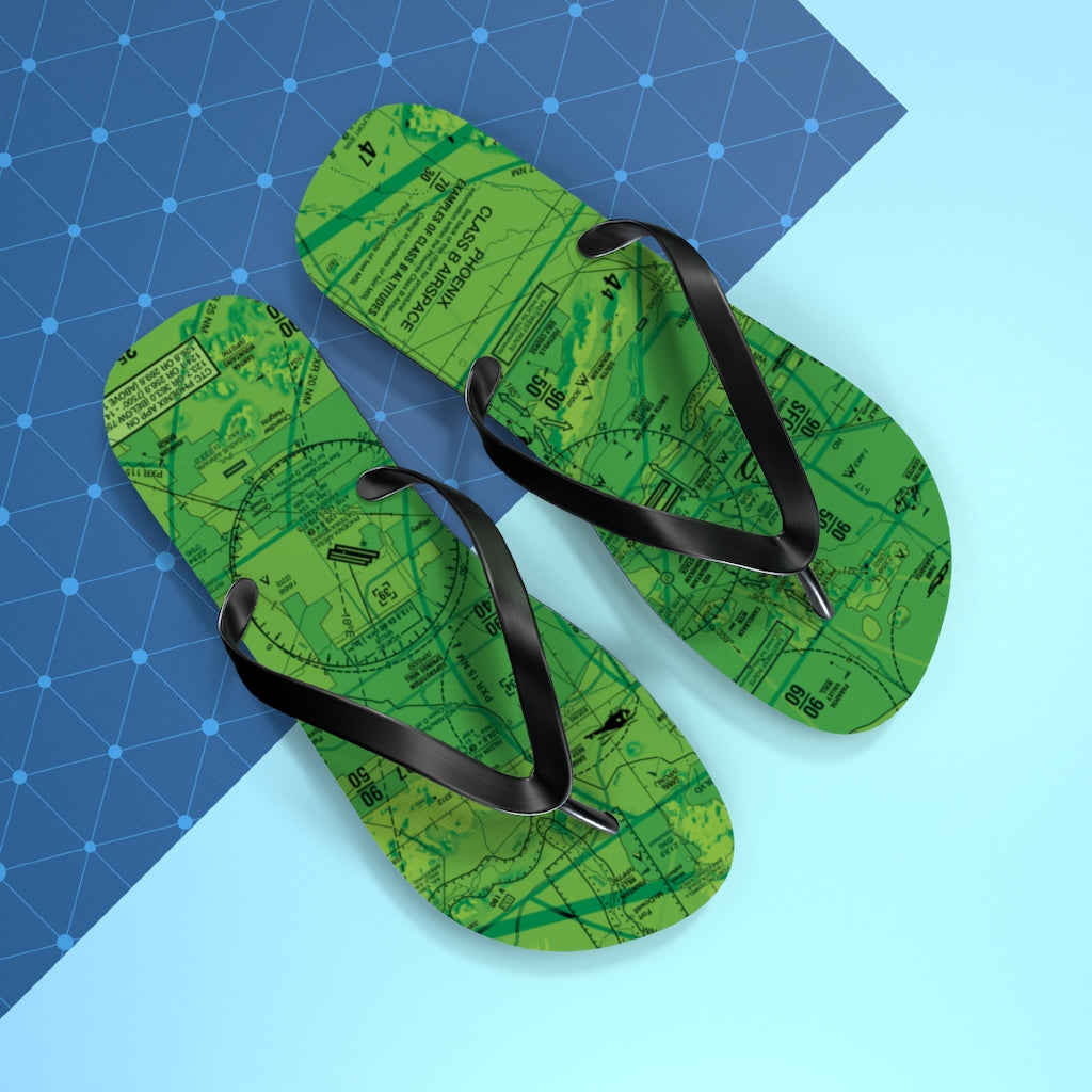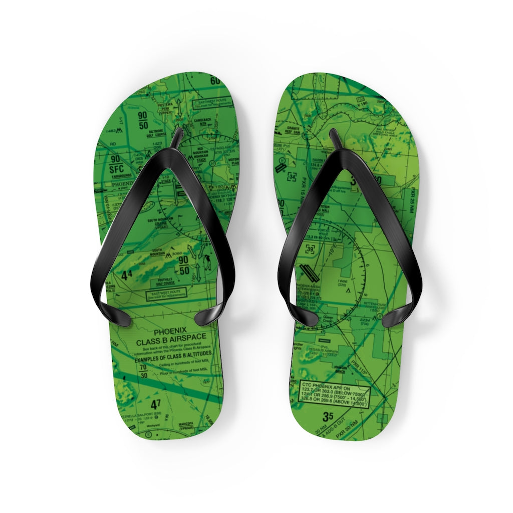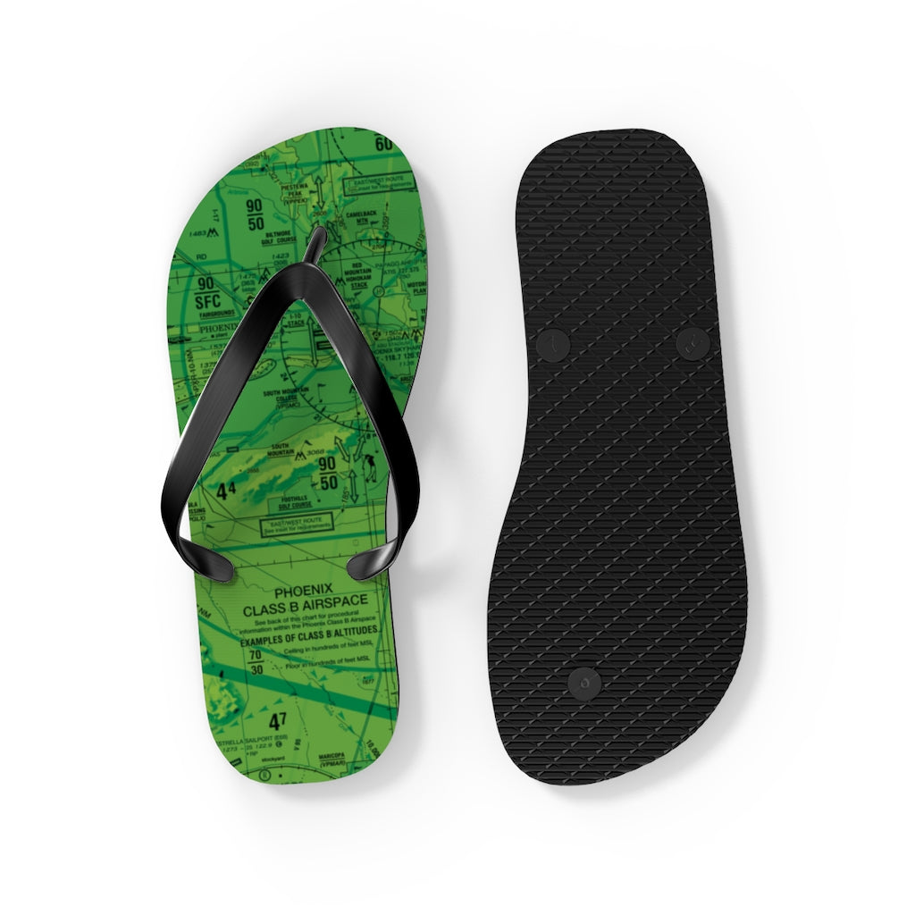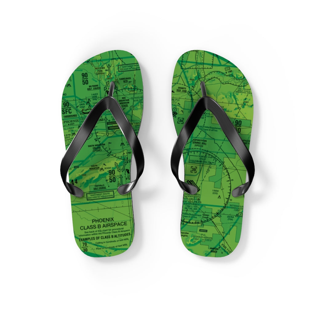 Prepare for an adventurous and carefree summer with a pair of colorful slippers featuring the Phoenix Sky Harbor International Airport (PHX) Terminal Area Chart (TAC). The sole is lined with a soft fabric to make sure you feel comfortable wherever your journey takes you.