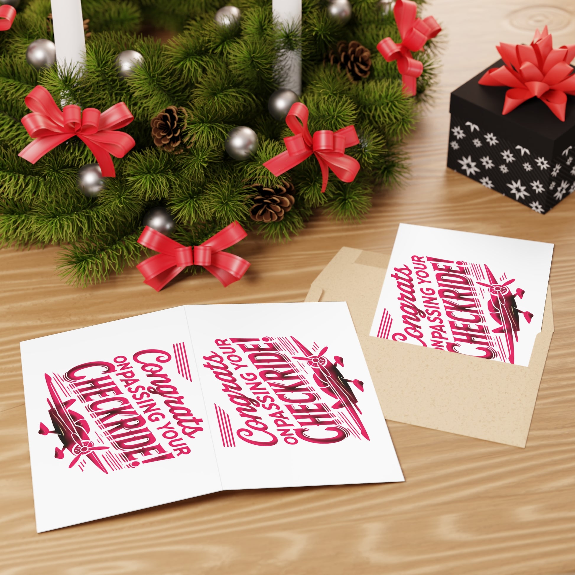 Congrats on passing your checkride! pack of 10 greeting cards (v1. pink)