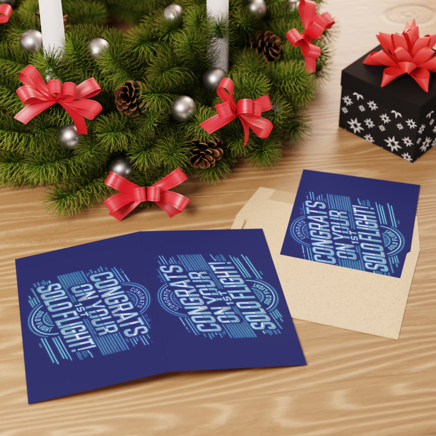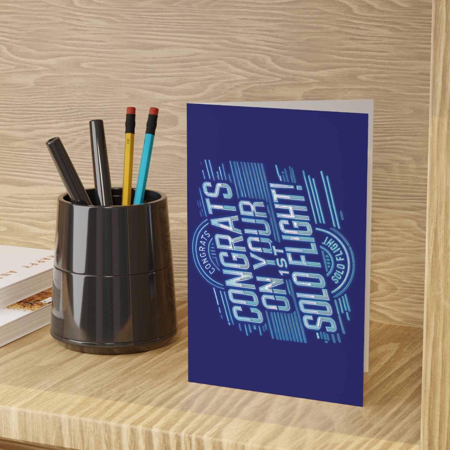Congrats on your 1st Solo Flight! pack of 10 greeting cards (neon blue)