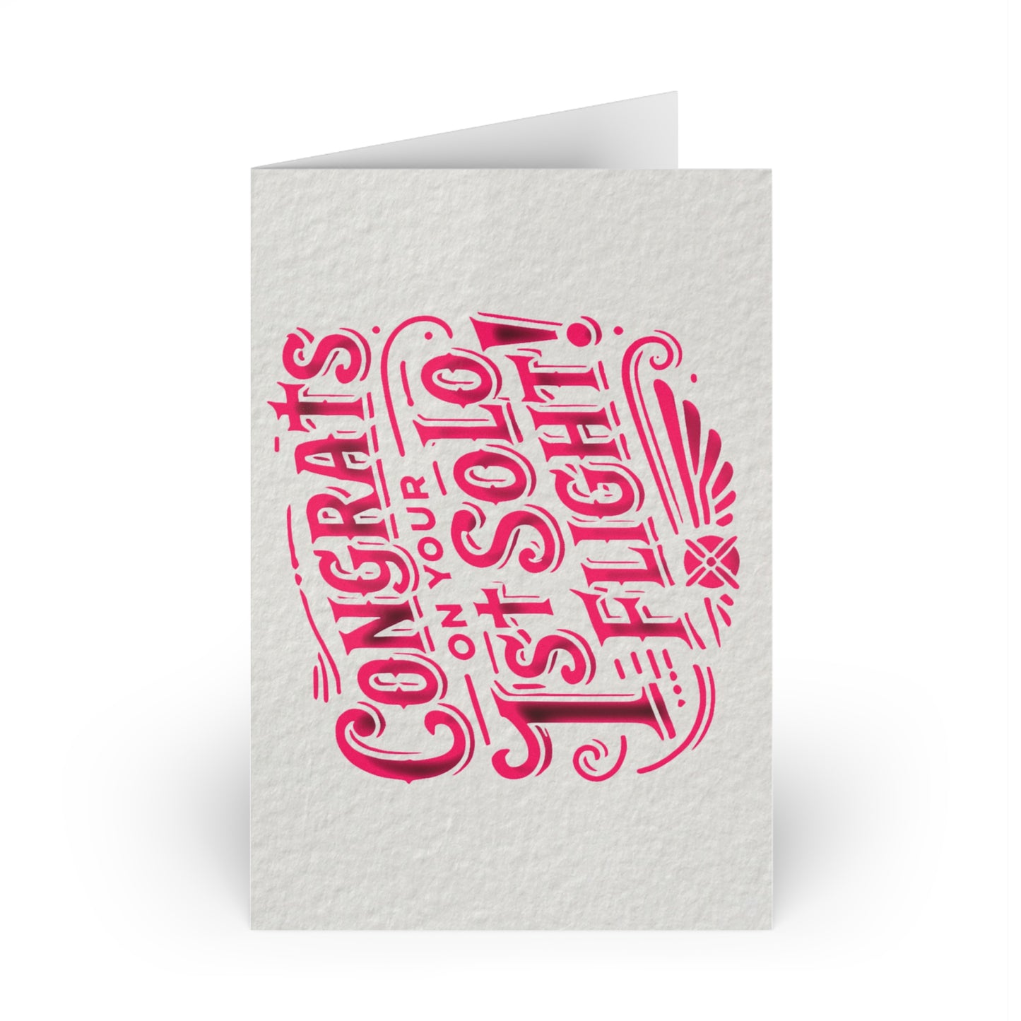 Congrats on your 1st Solo Flight! pack of 10 greeting cards (pink)