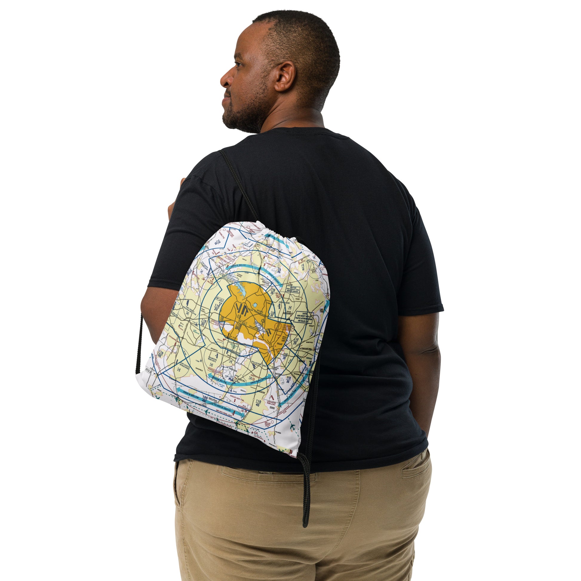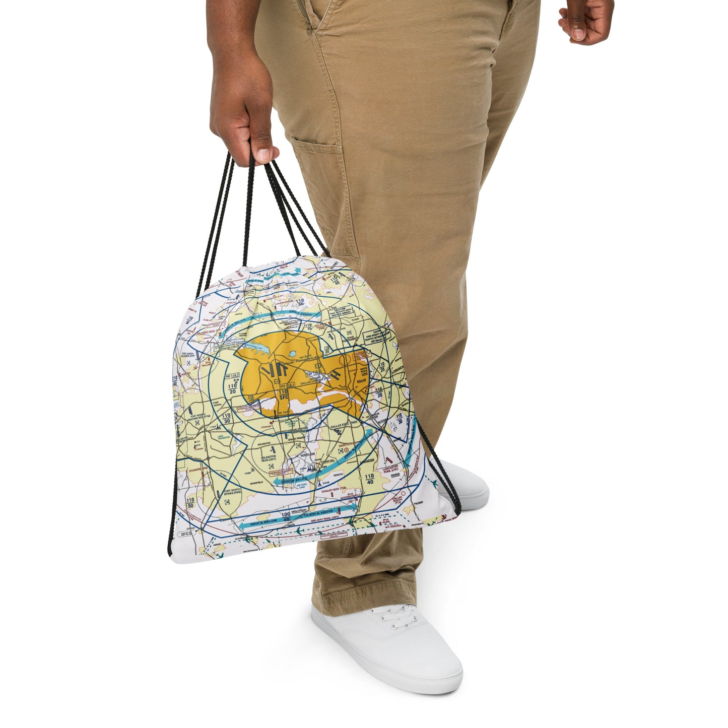 A great gift for the aviation lover. Drawstring bag featuring Dallas - Ft. Worth International Airport (DFW) Flyway Chart.