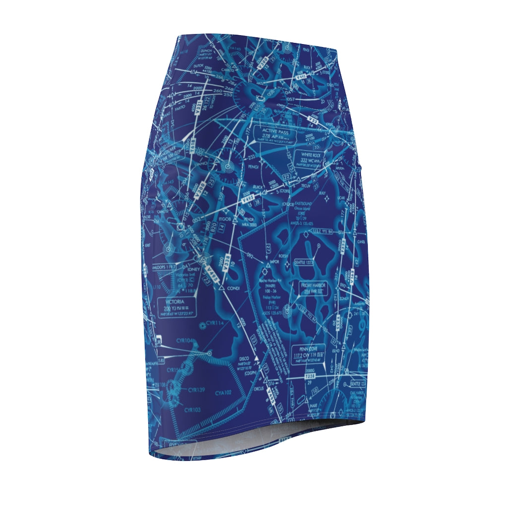 Comfortable and soft, all-over-print pencil skirt featuring Enroute Low Altitude Chart (ELUS3).
