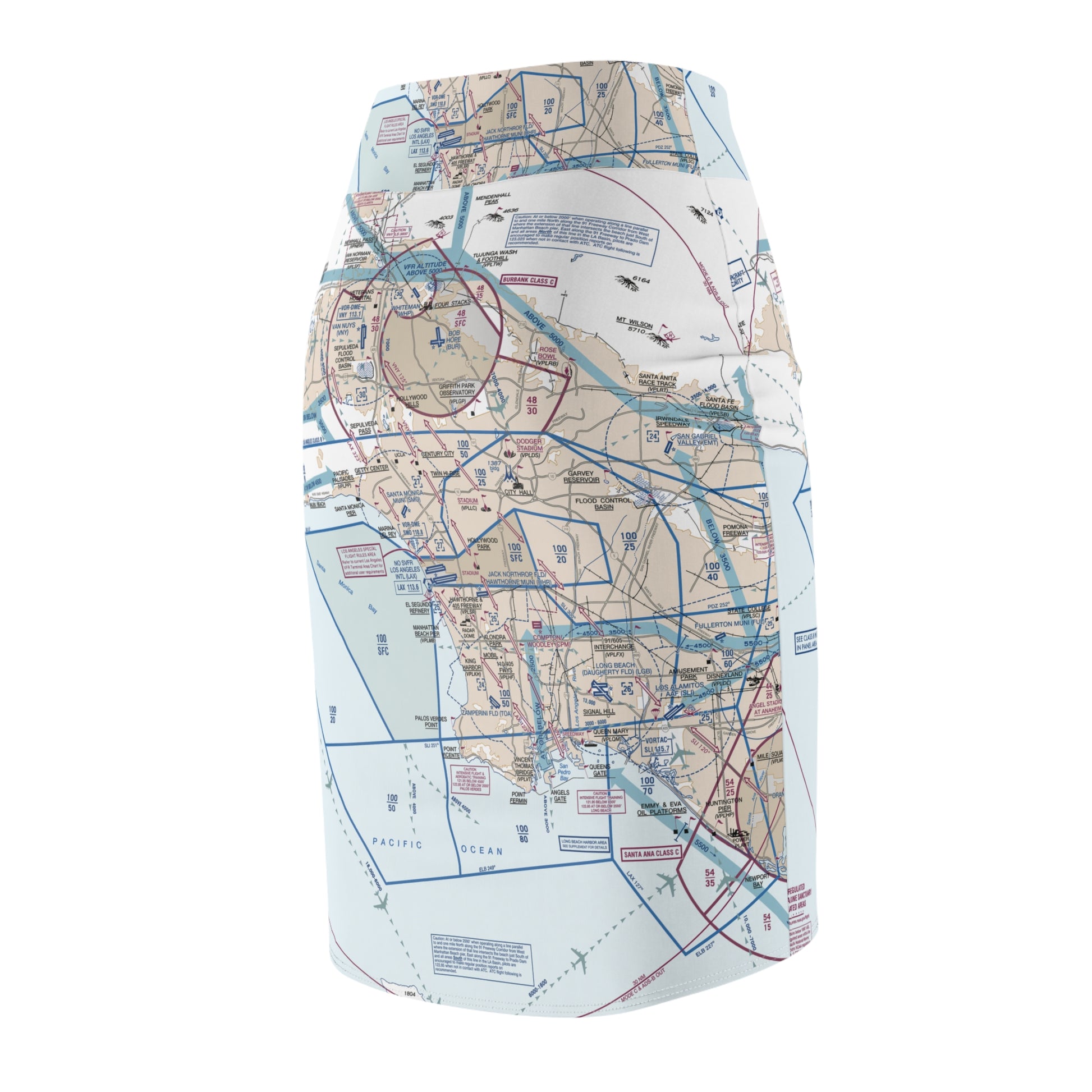 Comfortable and soft, all-over-print pencil skirt featuring the LAX Flyway Chart.