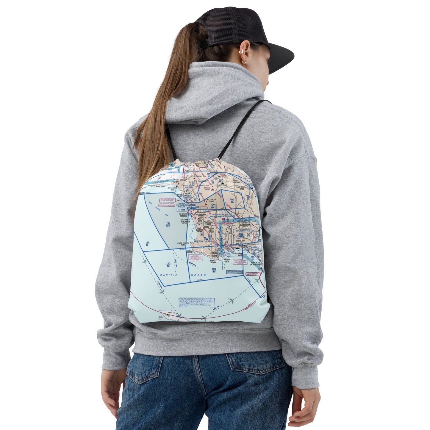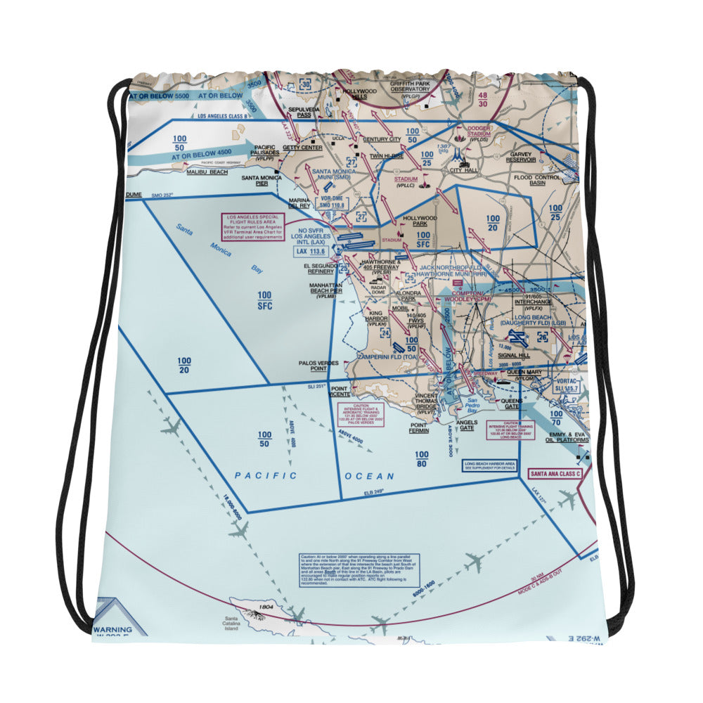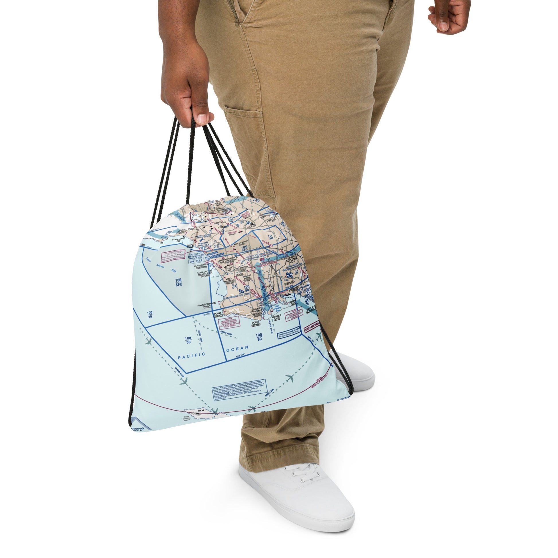 A great gift for the aviation lover. Drawstring bag featuring Los Angeles International Airport (LAX) Flyway Chart.