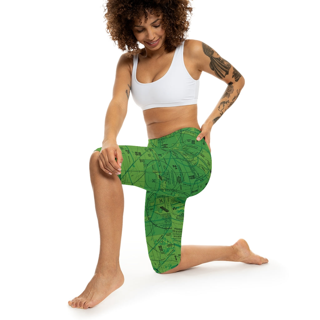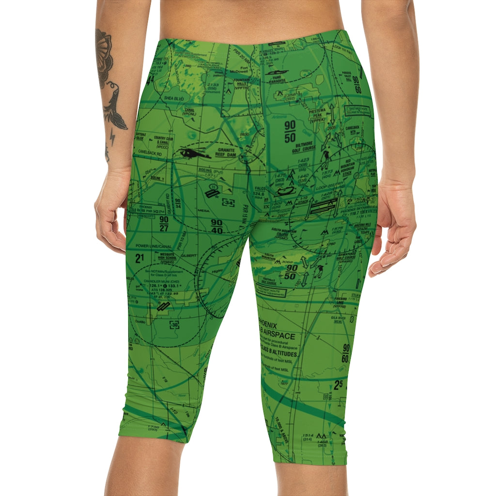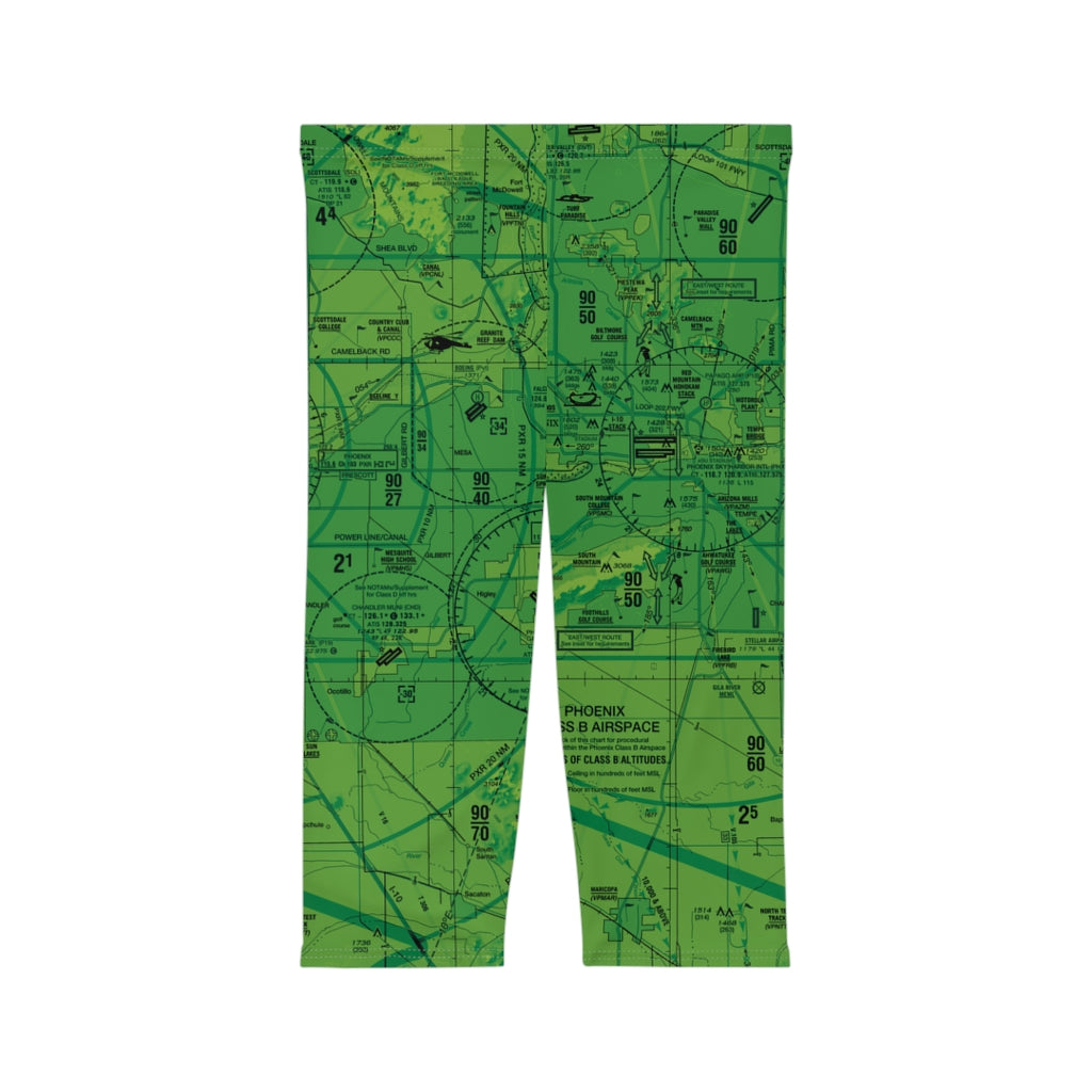 Stylish capri leggings featuring the Phoenix Sky Harbor International Airport (PHX) Terminal Area Chart (TAC). Made with anti-microbial polyester spandex that is both moisture-wicking and breathable, these leggings come with a mid-rise waist and are the perfect choice for a little pattern work on warm days, lounging at the hangar, or sweating it out at the gym.